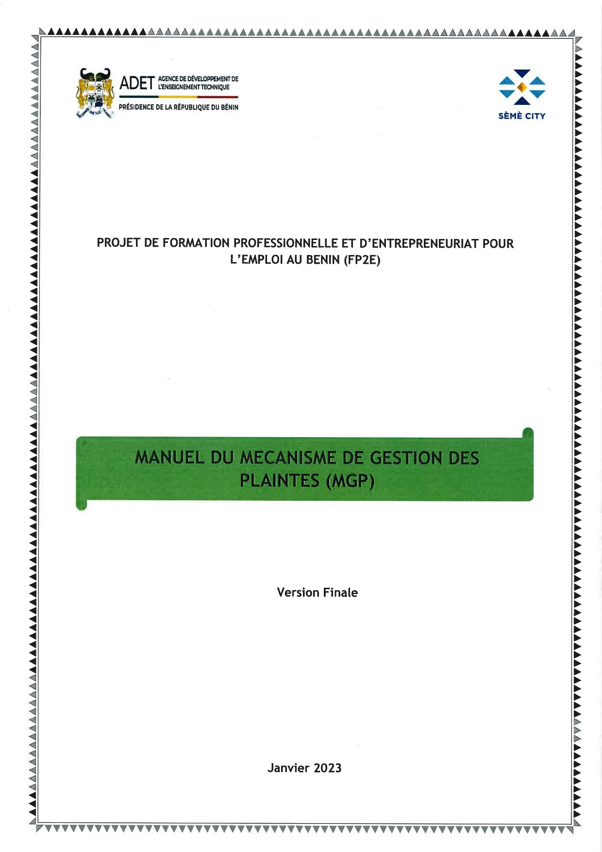 Manuel du Mécanisme de Gestion des Plaintes du Projet FP2E